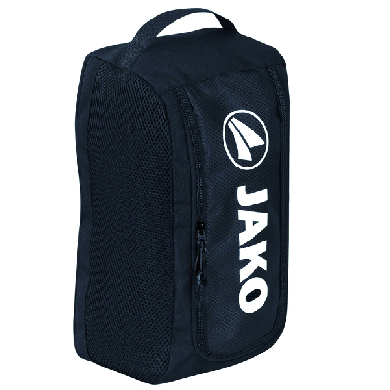 De nombreux sacs JAKO disposent d’un compartiment pour les vêtements mouillés au côté et d’un grand compartiment chaussures. Dans ces compartiments supplémentaires, vous pouvez ranger et transporter vos vêtements sales ou chaussures. De cette façon, le reste du contenu de votre sac n’entrera pas en contact avec vos chaussures. Votre sac n’a ni compartiment latéral ni compartiment chaussures? Vous recherchez une solution astucieuse pour transporter vos chaussures pratiquement et en toute sécurité? Avec le sac à chaussures JAKO, vous êtes équipé au mieux pour le sport et les loisirs. Grâce à la fermeture éclair à double sens, vous pouvez facilement ouvrir et fermer le sac. Le sac a les dimensions 20x15x37 cm et permet le transport en toute sécurité d’une ou deux paires de chaussures. Au bord du sac à chaussures noir, il y a une lanière pour porter et accrocher. Sur le dessus du sac à chaussures, le logo JAKO est placé en blanc.