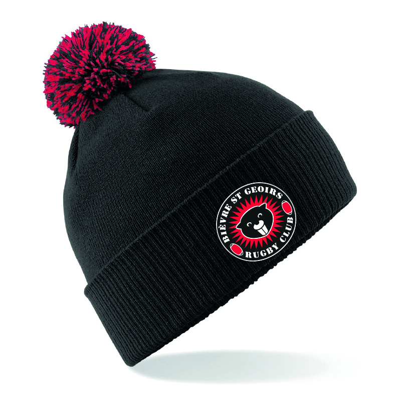 BIEVRE RUGBY – Bonnet à pompon – noir et rouge