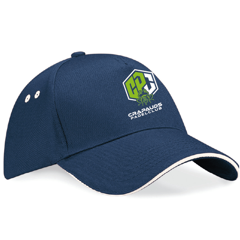 Descriptif : 100% coton drill, modèle 5 panneaux, visière préformée avec sandwich de couleur contrastée, taille réglable Rip-Strip™. Elle détient une circonférence de 58 cm. AVEC MARQUAGE CLUB