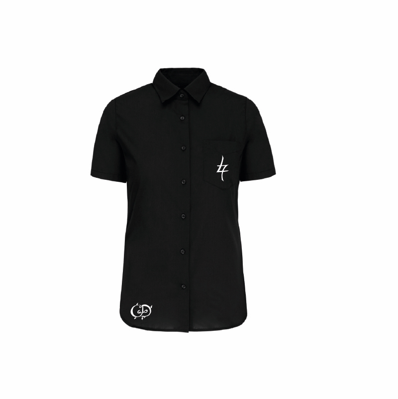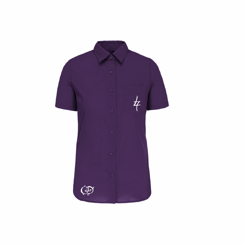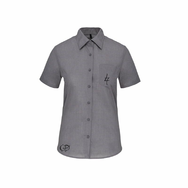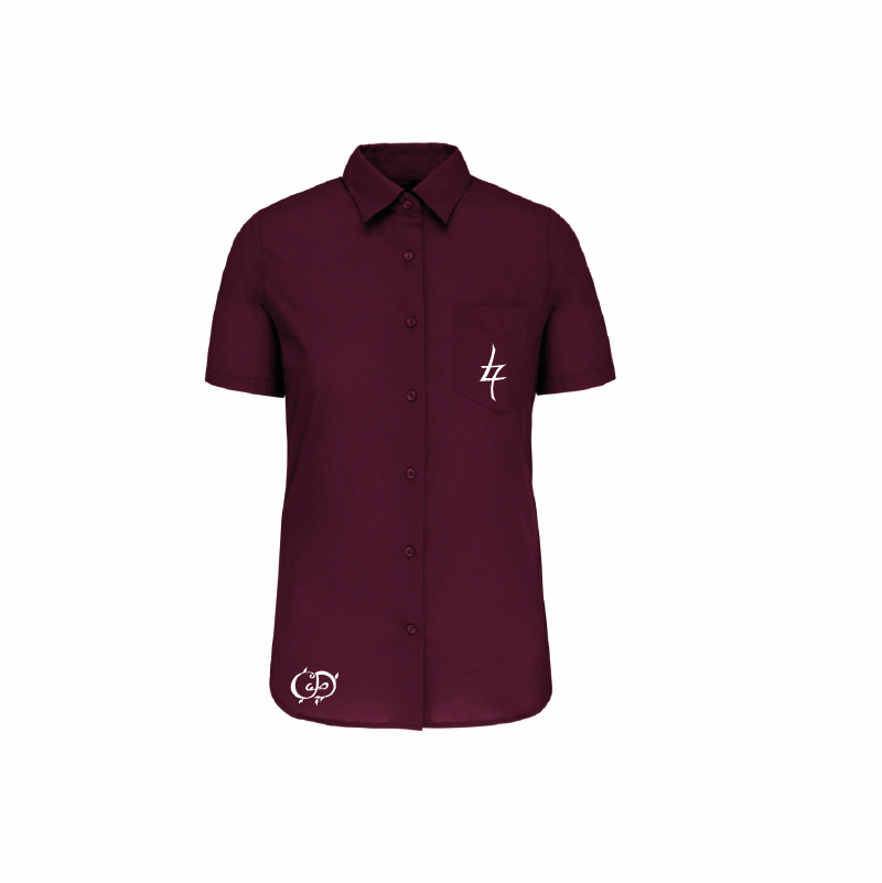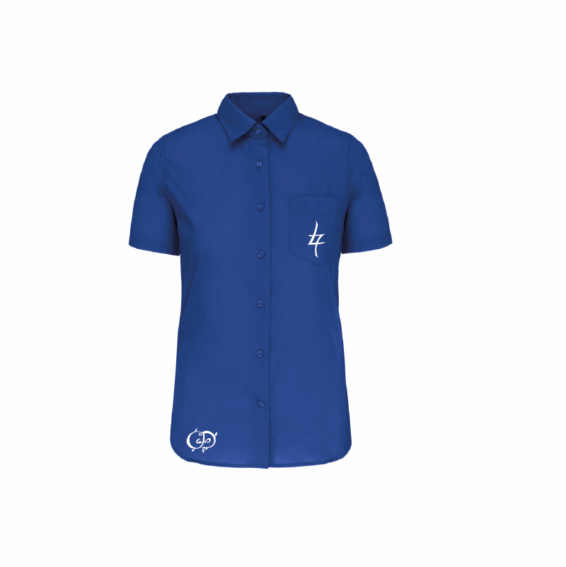 Confection polycoton pour un entretien facile, Résistance et style 65% polyester / 35% coton. Tissu popeline. Entretien facile. Col non boutonné. Boutons ton sur ton. Poche poitrine côté gauche en V. 1 bouton de rappel. Bas arrondi.