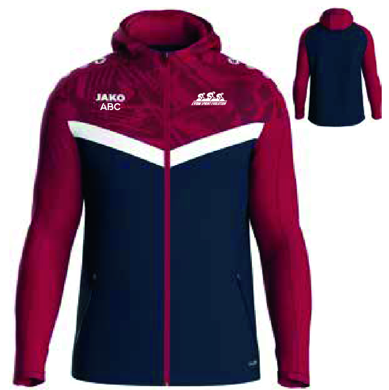 LYON SPRINT – 6824 – Veste capuche ICONIC – JAKO – marine et rouge chili